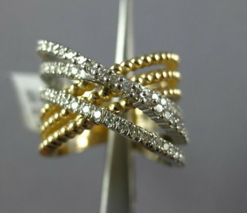 .69CT DIAMOND 14KT 2 TONE GOLD MULTI ROW CRISS CROSS INFINITY BEADED LOVE RING