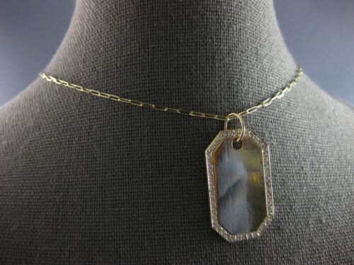 14KT YELLOW GOLD FUN FLOATING PENDANT. 3D CLASSIC OCTAGON DOG TAG DESIGN. DIAMONDS ARE F/G COLOR, VSSI CLARITY .69 CARATS. MEASURES 29mm X 18.5mm. COMES ON A 14KT GOLD DIAMOND CUT 16" INCH CHAIN. WRITTEN APPRAISAL AVAILABLE. COMES IN A PRESENTABLE GIFT BOX.