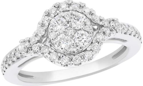 .69CT DIAMOND 18KT WHITE GOLD 3D CLASSIC ROUND FLOWER HALO FRIENDSHIP LOVE RING