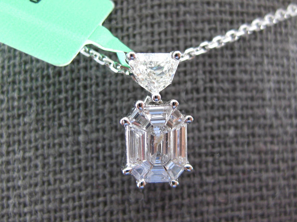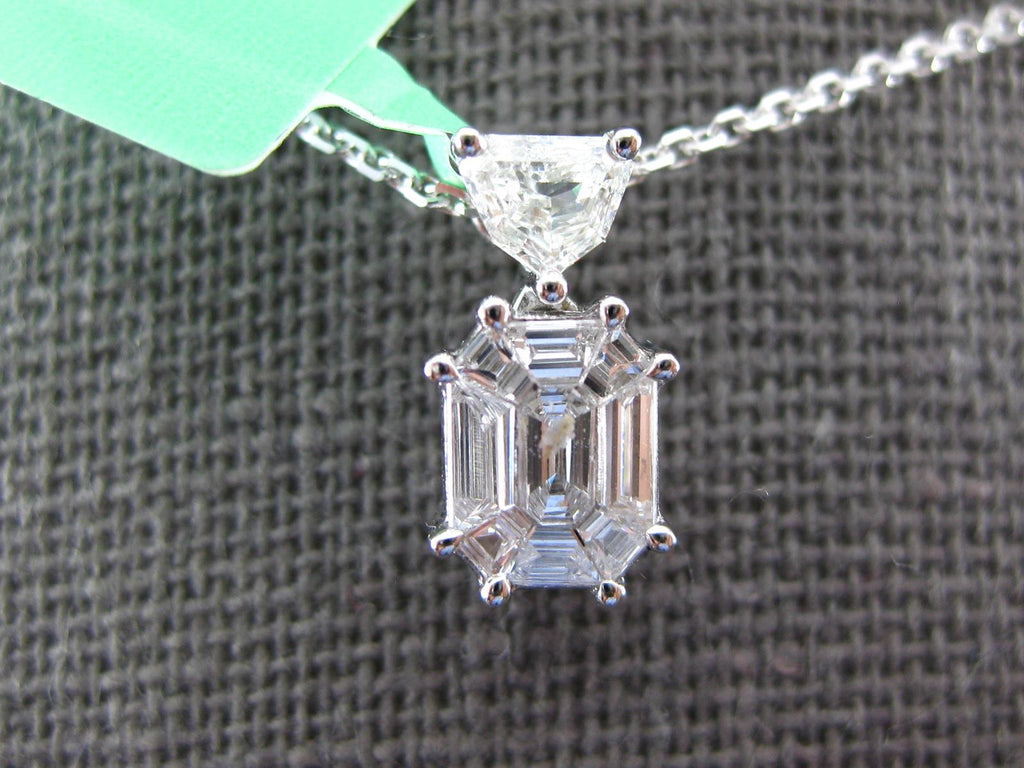 .69CT DIAMOND 18KT WHITE GOLD BAGUETTE KITE CUT CLUSTER OCTAGON FLOATING PENDANT