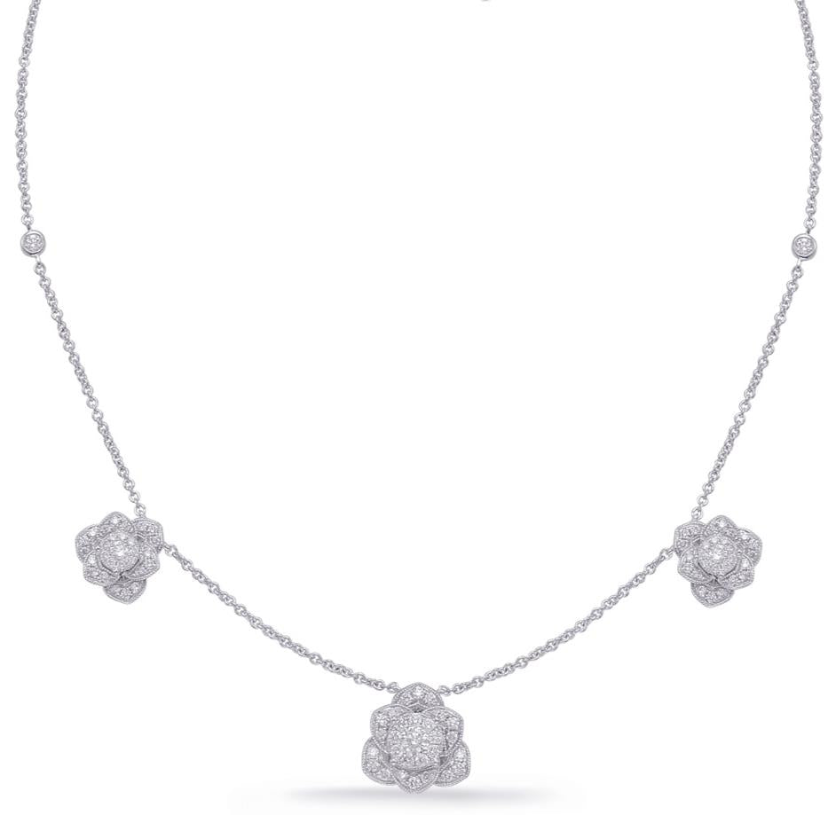 .70CT DIAMOND 14KT WHITE GOLD MULTI FLOWER CHANDELIER BY THE YARD LOVE NECKLACE
