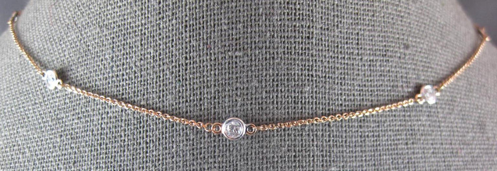 14KT WHITE AND ROSE GOLD LOVE NECKLACE. 3D CLASSIC BY THE YARD DESIGN. DIAMONDS ARE F/G COLOR, VVS/VS CLARITY .70 CARATS. MEASURES 4mm WIDE. 18" INCHES LONG. WRITTEN APPRAISAL AVAILABLE. COMES IN A PRESENTABLE GIFT BOX.