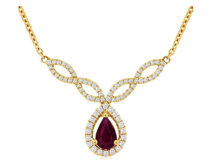 .70CT DIAMOND & AAA RUBY 14KT YELLOW GOLD PEAR SHAPE & ROUND TEAR DROP NECKLACE