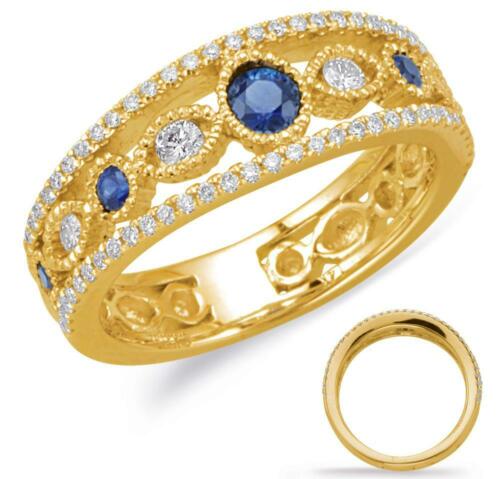 14KT YELLOW GOLD FUN RING. 3D FILIGREE MILGRAIN DESIGN. ROUND DIAMONDS ARE F/G COLOR, VSSI CLARITY .37 CARATS. AAA SAPPHIRES ARE .33 CARATS. MEASURES 7mm WIDE. RING SIZE 6. CAN BE SIZED BY OUR MASTER JEWELER UPON REQUEST. WRITTEN APPRAISAL AVAILABLE. COMES IN A PRESENTABLE GIFT BOX.
