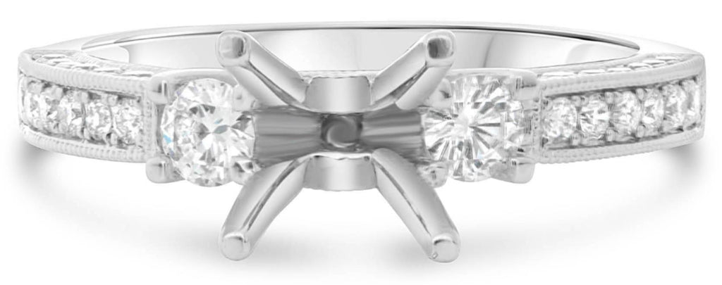 .71CT DIAMOND 14KT WHITE GOLD 3 STONE ROUND 4 PRONG SEMI MOUNT ENGAGEMENT RING