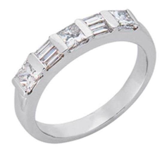 14KT WHITE GOLD ANNIVERSARY RING. 3D CLASSIC CHANNEL DESIGN. DIAMONDS ARE F/G COLOR, VSSI CLARITY. PRINCESS DIAMONDS ARE .51 CARATS. BAGUETTE DIAMONDS ARE .20 CARATS. RING SIZE 6.5. CAN BE SIZED BY OUR MASTER JEWELER UPON REQUEST. WRITTEN APPRAISAL AVAILABLE. COMES IN A PRESENTABLE GIFT BOX.