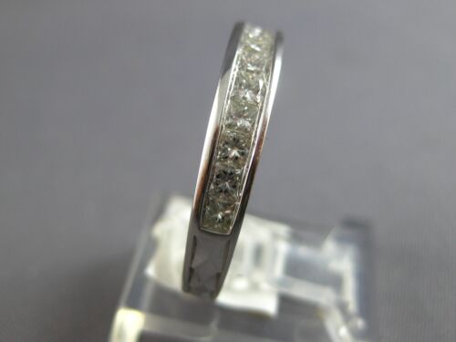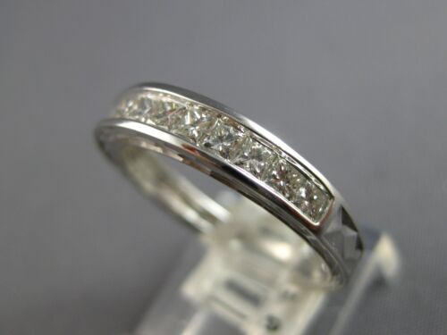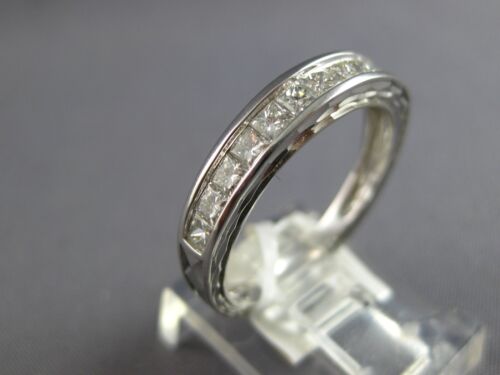 14KT WHITE GOLD WEDDING ANNIVERSARY RING. 3D CLASSIC CHANNEL FILIGREE SEMI ETERNITY DESIGN. PRINCESS CUT DIAMONDS ARE F/G COLOR, VSSI CLARITY .71 CARATS. MEASURES 4mm WIDE. RING SIZE 7. CAN BE SIZED BY OUR MASTER JEWELER UPON REQUEST. WRITTEN APPRAISAL AVAILABLE. COMES IN A PRESENTABLE GIFT BOX.