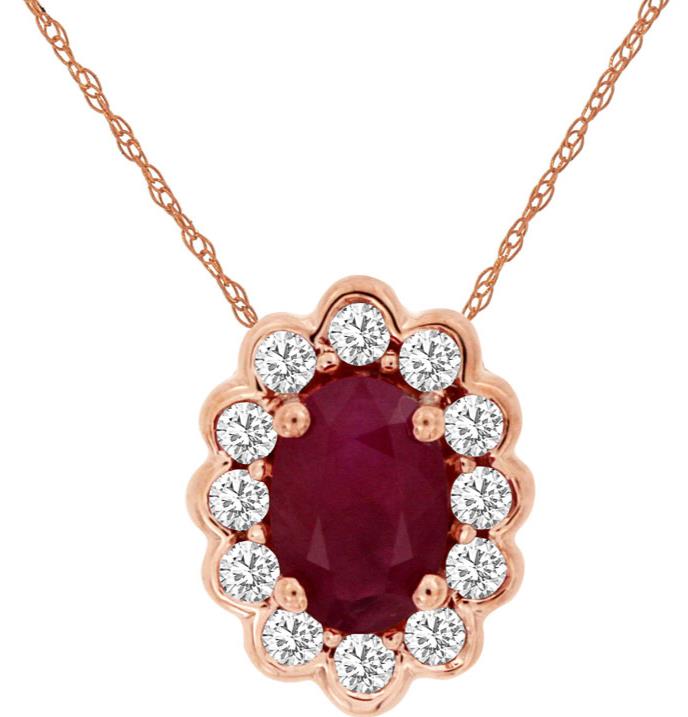 .71CT DIAMOND & AAA RUBY 14K ROSE GOLD OVAL & ROUND HALO FLOWER FLOATING PENDANT