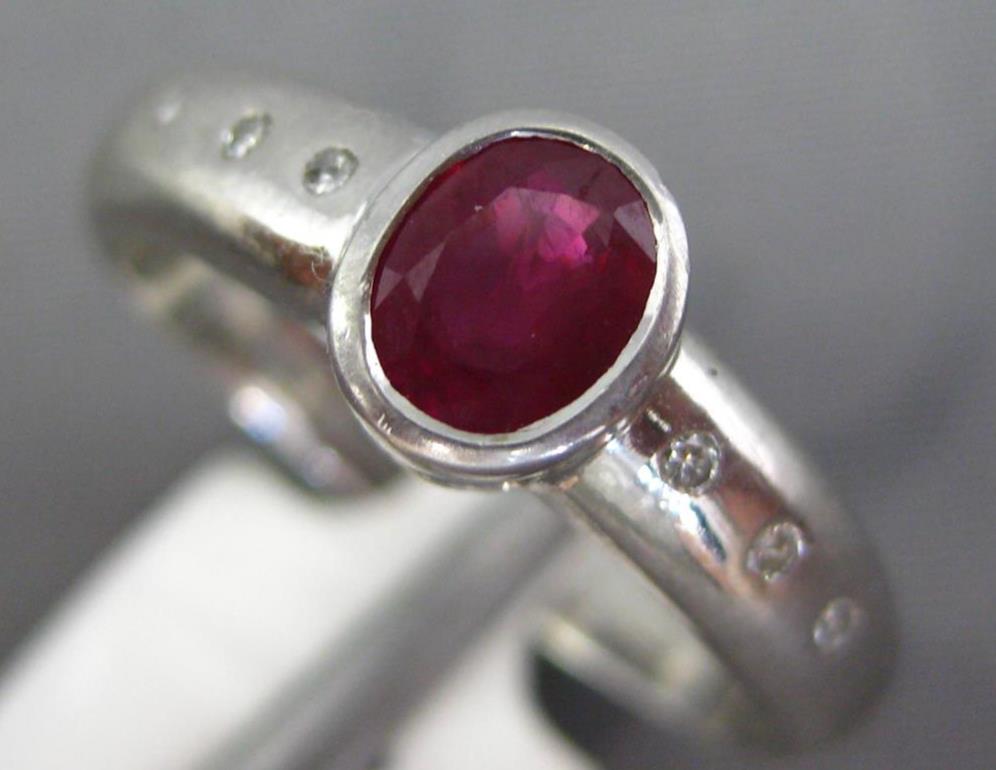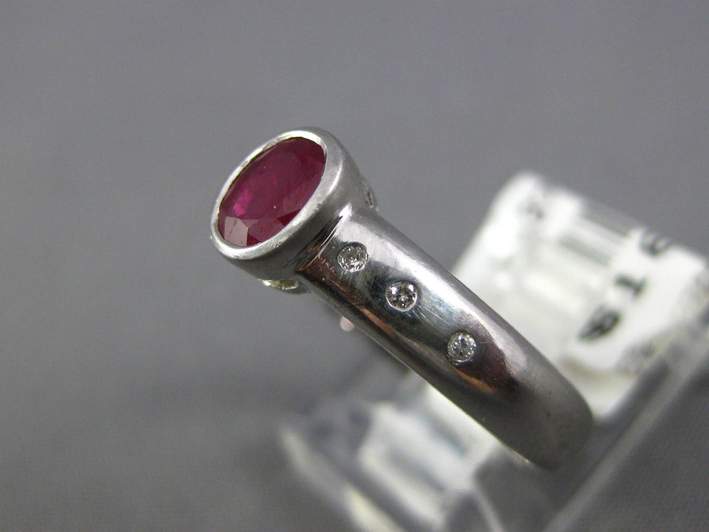 .71CT DIAMOND & AAA RUBY 14KT WHITE GOLD 3D OVAL BEZEL SOLITAIRE FRIENDSHIP RING