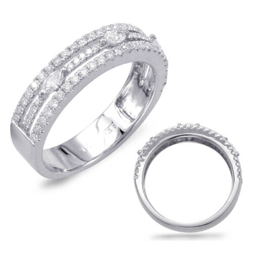 14KT WHITE GOLD ANNIVERSARY RING. 3D CLASSIC THREE ROW DESIGN. DIAMONDS ARE F/G COLOR, VSSI CLARITY. ROUND DIAMONDS ARE .54 CARATS. MARQUISE DIAMONDS ARE .18 CARATS. RING SIZE 6.5. CAN BE SIZED BY OUR MASTER JEWELER UPON REQUEST. WRITTEN APPRAISAL AVAILABLE. COMES IN A PRESENTABLE GIFT BOX.