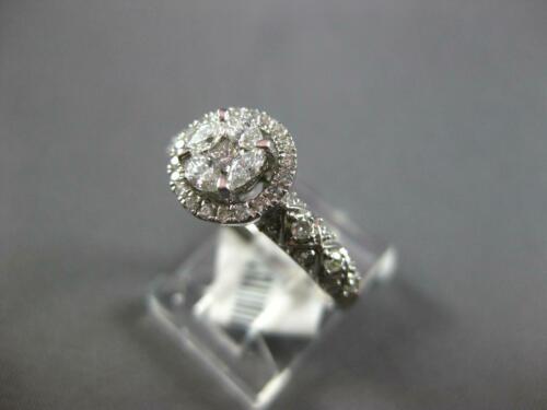 14KT WHITE GOLD ENGAGEMENT RING. 3D HALO INVISIBLE DESIGN. PRINCESS CUT, MARQUISE, AND ROUND DIAMONDS ARE F/G COLOR, VSSI CLARITY .72 CARATS. MEASURES 9mm WIDE. RING SIZE 7. CAN BE SIZED BY OUR MASTER JEWELER UPON REQUEST. WRITTEN APPRAISAL AVAILABLE. COMES IN A PRESENTABLE GIFT BOX.