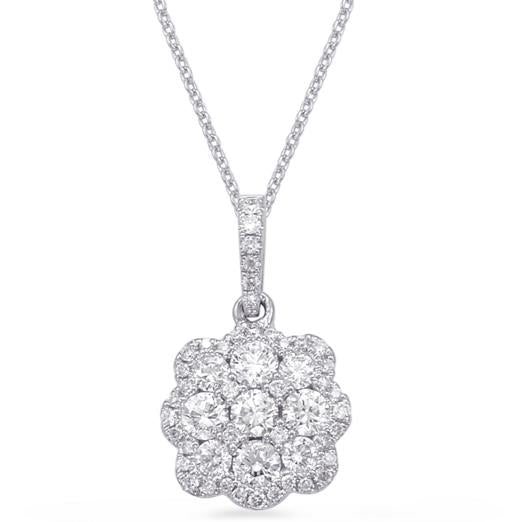 .72CT DIAMOND 14KT WHITE GOLD 3D ROUND INVISIBLE FLOWER SQUARE FLOATING PENDANT
