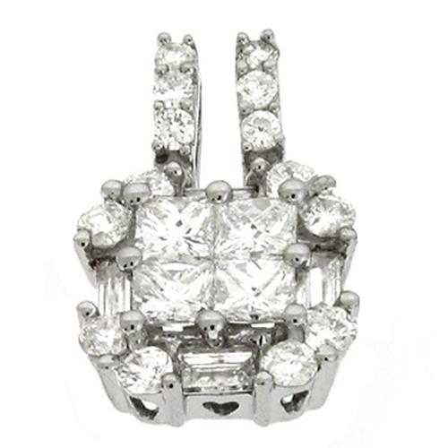 .72CT DIAMOND 14KT WHITE GOLD ROUND PRINCESS & BAGUETTE SQUARE FLOATING PENDANT