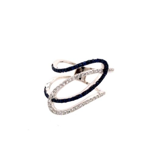 .72CT DIAMOND & AAA SAPPHIRE 18KT WHITE GOLD 3D CRISS CROSS LOVE KNOT FUN RING