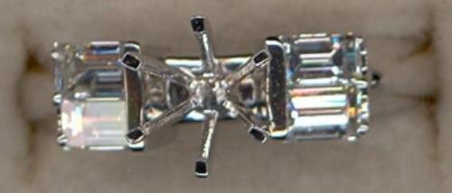 14KT WHITE GOLD ENGAGEMENT RING. 3D TWO ROW SIX PRONG DESIGN. BAGUETTE DIAMONDS ARE F/G COLOR, VSSI CLARITY .73 CARATS. FITS 5mm STONE. RING SIZE 7. CAN BE SIZED BY OUR MASTER JEWELER UPON REQUEST. WRITTEN APPRAISAL AVAILABLE. COMES IN A PRESENTABLE GIFT BOX.