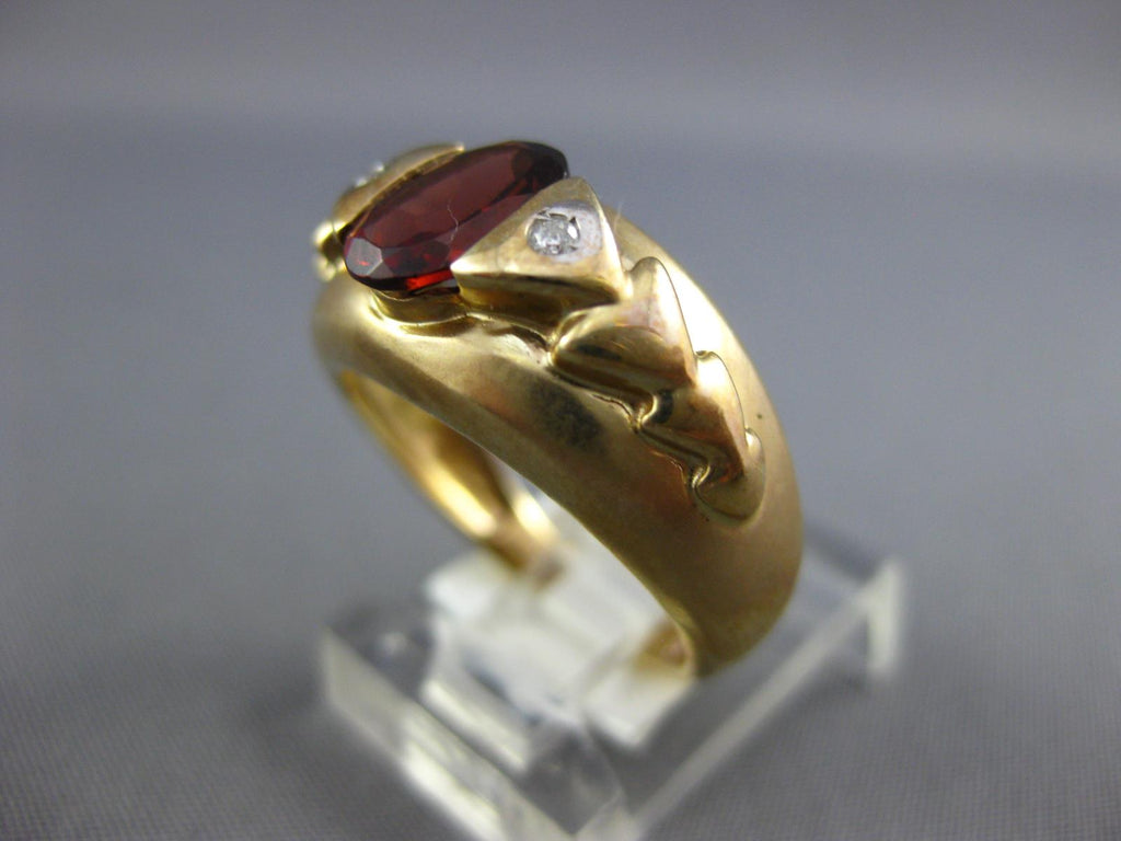 .73CT DIAMOND & AAA GARNET 14KT YELLOW GOLD 3D OVAL ETOILE TRIANGULAR FUN RING