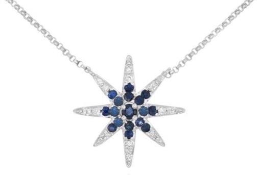 .74CT DIAMOND & AAA SAPPHIRE 14KT WHITE GOLD 3D SNOWFLAKE FLOWER LOVE NECKLACE