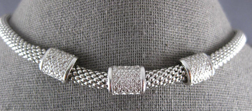 .75CT DIAMOND 14KT WHITE GOLD 3D SQUARE BY THE YARD MESH ITALIAN FUN NECKLACE