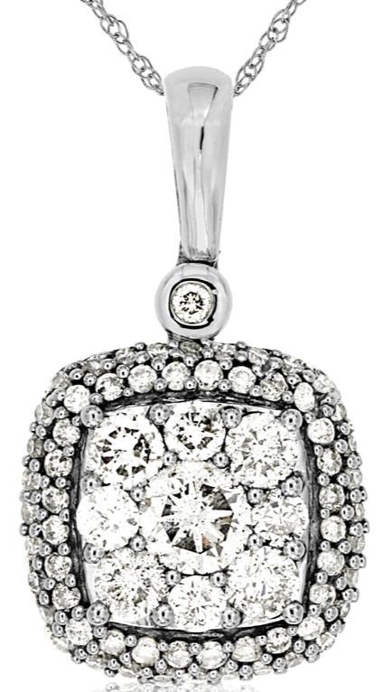 .75CT DIAMOND 14KT WHITE GOLD CLASSIC ROUND CLUSTER SQUARE FUN FLOATING PENDANT