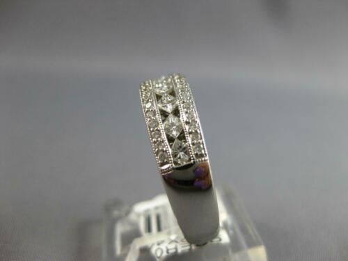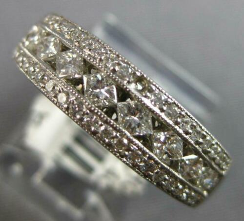 18KT WHITE GOLD WEDDING ANNIVERSARY RING. 3D CLASSIC THREE ROW FILIGREE MILGRAIN DESIGN. ROUND AND PRINCESS CUT DIAMONDS ARE F/G COLOR, VSSI CLARITY .75 CARATS. MEASURES 6mm WIDE. RING SIZE 7.5. CAN BE SIZED BY OUR MASTER JEWELER UPON REQUEST. WRITTEN APPRAISAL AVAILABLE. COMES IN A PRESENTABLE GIFT BOX.
