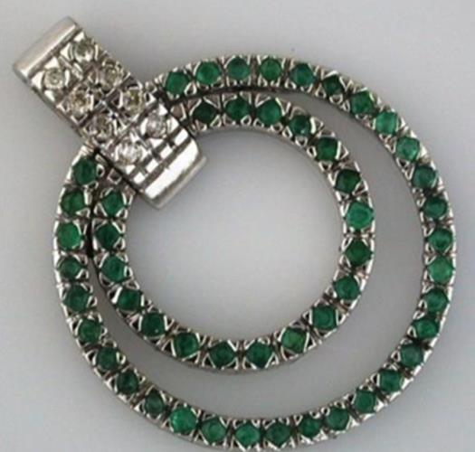 .75CT DIAMOND & AAA EMERALD 14KT WHITE GOLD DOUBLE CIRCULAR FUN FLOATING PENDANT