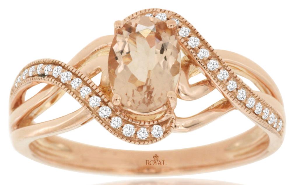 .75CT DIAMOND & AAA MORGANITE 14KT ROSE GOLD OVAL & ROUND CRISS CROSS LOVE RING