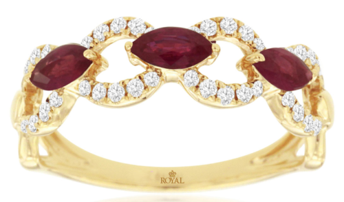 .75CT DIAMOND & AAA RUBY 14K YELLOW GOLD 3D MARQUISE MULTI LINK ANNIVERSARY RING