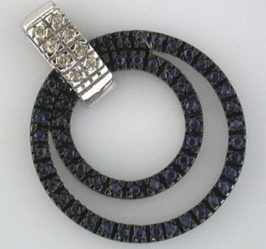 .75CT DIAMOND & AAA SAPPHIRE 14K WHITE GOLD DOUBLE CIRCULAR FUN FLOATING PENDANT
