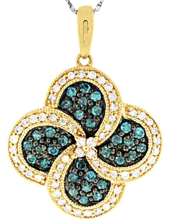 .75CT WHITE & BLUE DIAMOND 14KT YELLOW GOLD DOUBLE INFINITY FLOWER LOVE PENDANT