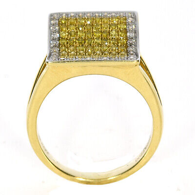 .75CT WHITE & FANCY YELLOW DIAMOND 18KT 2 TONE GOLD 3D PAVE RECTANGULAR FUN RING