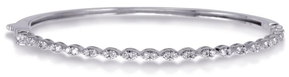 .76CT DIAMOND 14KT WHITE GOLD ROUND MARQUISE SHAPE SEMI ETERNITY BANGLE BRACELET