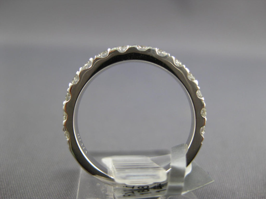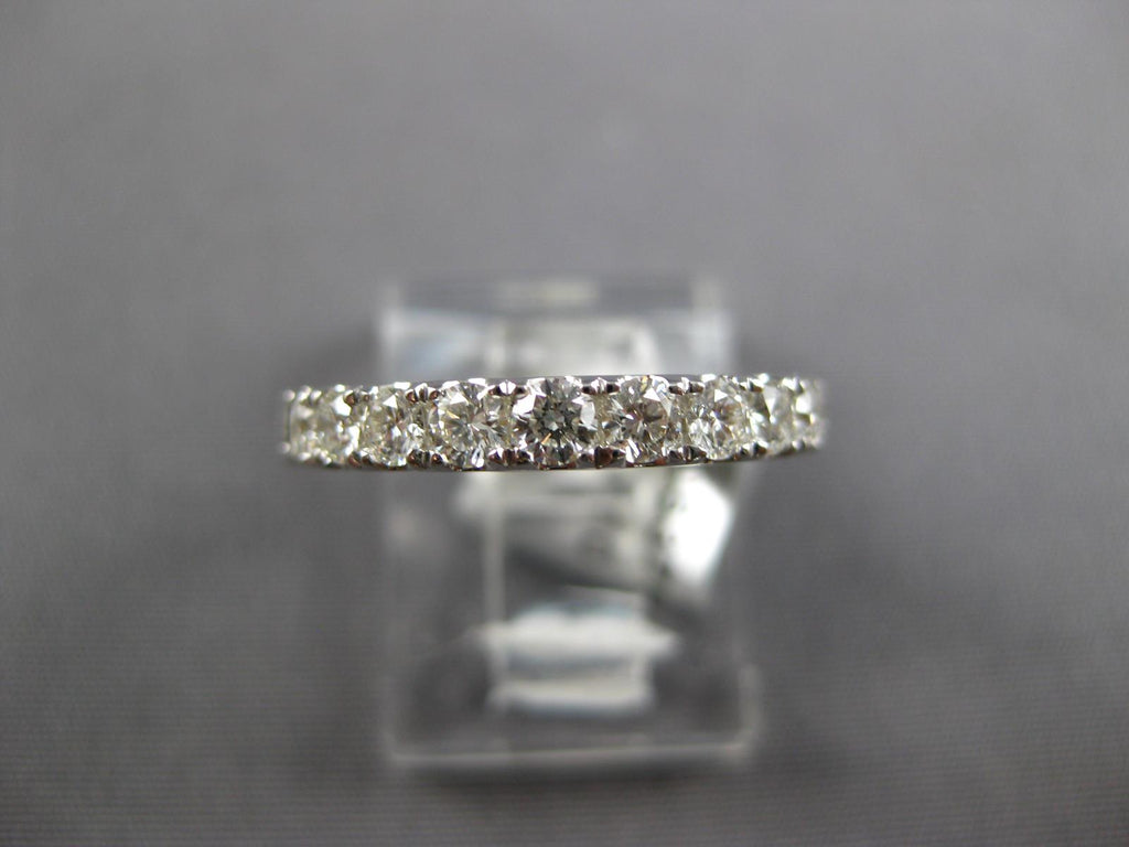 18KT WHITE GOLD WEDDING ANNIVERSARY RING. 3D CLASSIC ROUND SEMI ETERNITY DESIGN. DIAMONDS ARE F/G COLOR, VSSI CLARITY .76 CARATS. MEASURES 3mm WIDE. RING SIZE 5. CAN BE SIZED BY OUR MASTER JEWELER UPON REQUEST. WRITTEN APPRAISAL AVAILABLE. COMES IN A PRESENTABLE GIFT BOX.