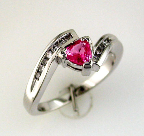 .76CT DIAMOND & AAA PINK SAPPHIRE 14KT WHITE GOLD 3D TRILLION CRISS CROSS RING
