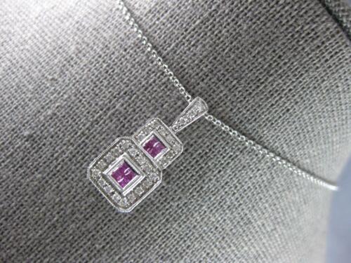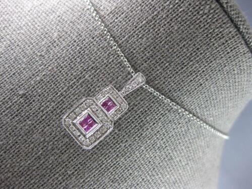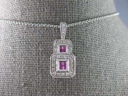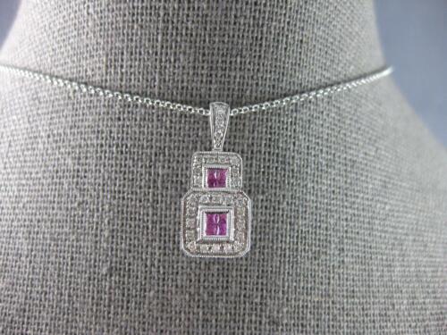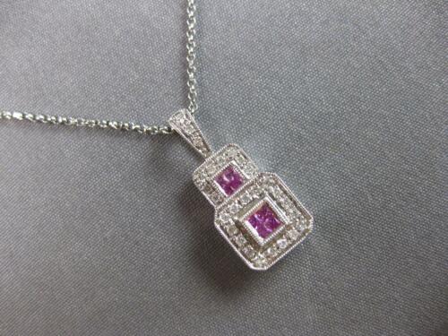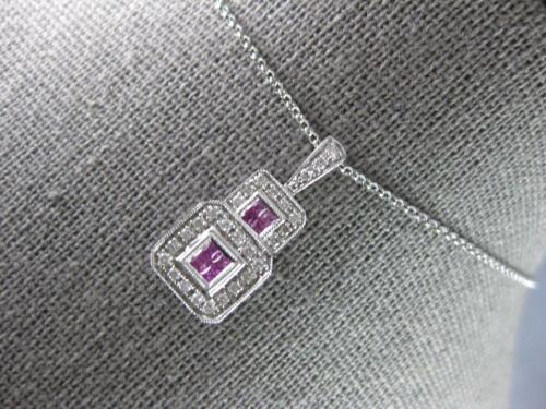 14KT WHITE GOLD FLOATING PENDANT. 3D DOUBLE SQUARE DESIGN. ROUND DIAMONDS ARE F/G COLOR, VSSI CLARITY .36 CARATS. AAA PRINCESS CUT PINK SAPPHIRES ARE .40 CARATS. MEASURES 21mm X 9mm. COMES ON A 14KT GOLD DIAMOND CUT 16" INCH CHAIN. WRITTEN APPRAISAL AVAILABLE. COMES IN A PRESENTABLE GIFT BOX.