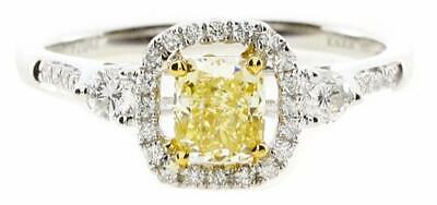 .76CT WHITE & FANCY YELLOW DIAMOND 18KT 2 TONE GOLD CUSHION HALO ENGAGEMENT RING