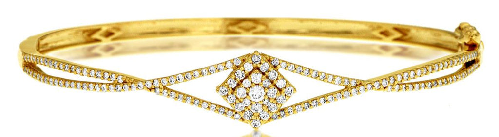 .77CT DIAMOND 14K YELLOW GOLD ROUND CLUSTER GEOMETRICAL INFINITY BANGLE BRACELET