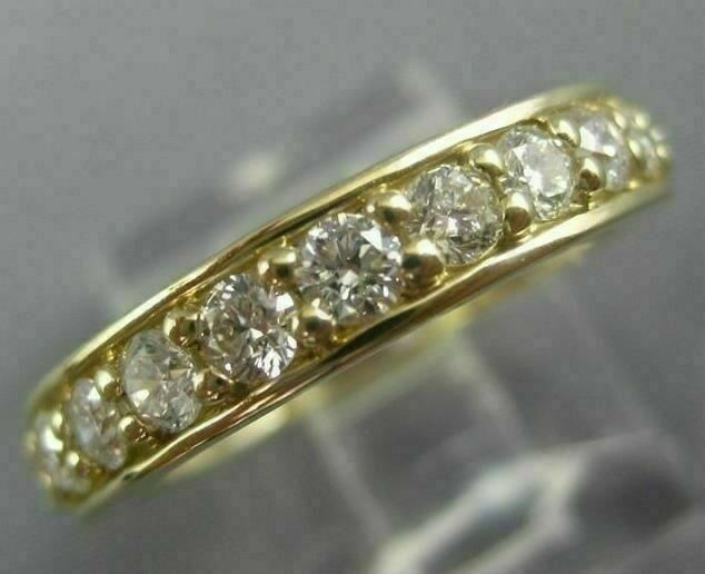 14KT YELLOW GOLD WEDDING ANNIVERSARY RING. 3D CLASSIC SEMI ETERNITY DESIGN. DIAMONDS ARE F/G COLOR. VSSI CLARITY .77 CARATS. MEASURES 4mm WIDE. RING SIZE 6.75. CAN BE SIZED BY OUR MASTER JEWELER UPON REQUEST. WRITTEN APPRAISAL AVAILABLE. COMES IN A PRESENTABLE GIFT BOX.