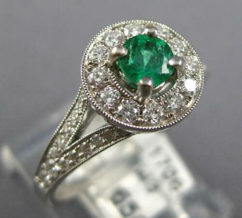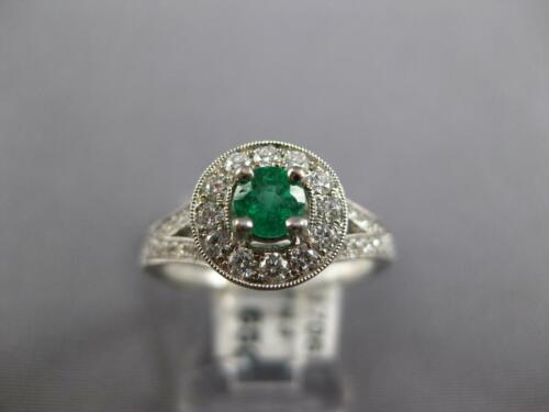 .77CT DIAMOND & AAA EMERALD 18KT WHITE GOLD ROUND HALO FILIGREE FLOWER FUN RING