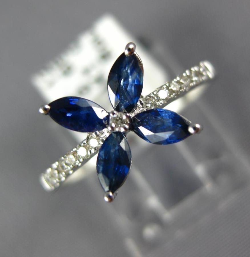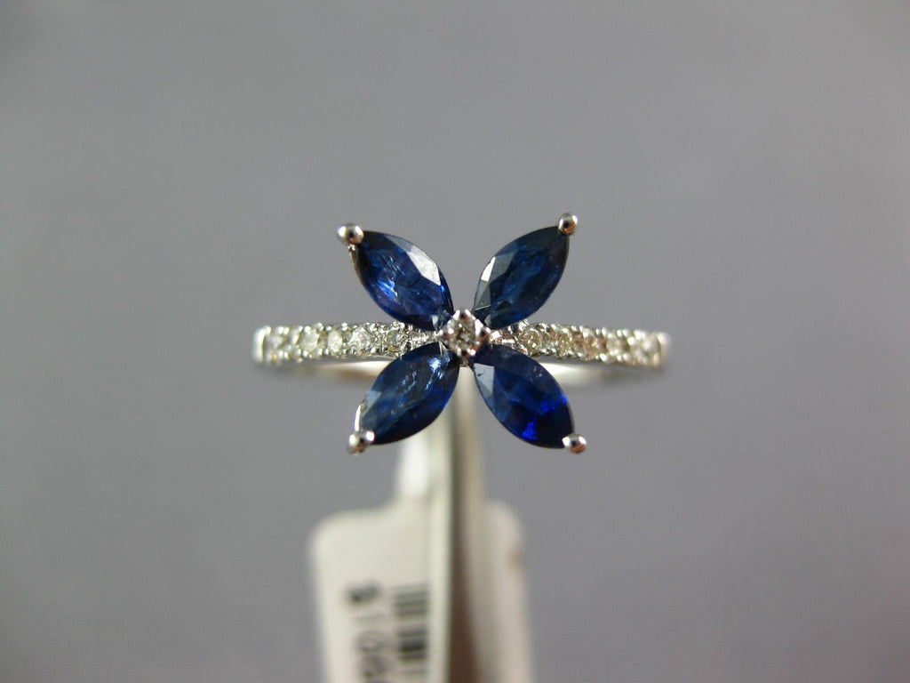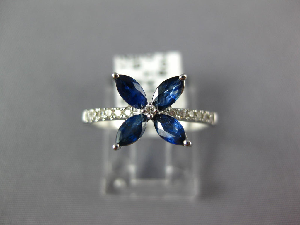 .77CT DIAMOND & AAA SAPPHIRE 14KT WHITE GOLD MARQUISE 4 LEAF CLOVER FLOWER RING