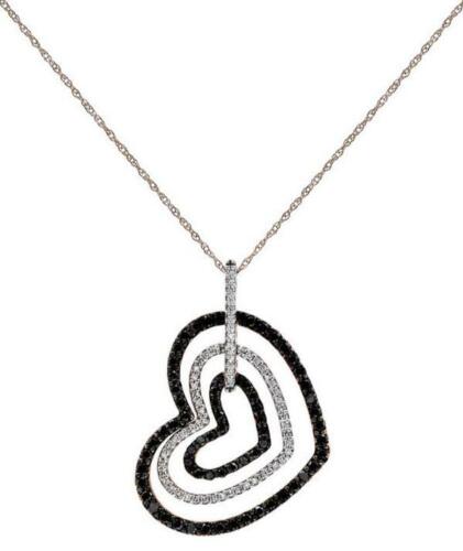 .77CT WHITE & BLACK DIAMOND 14KT ROSE GOLD 3D MULTI OPEN HEART FLOATING PENDANT