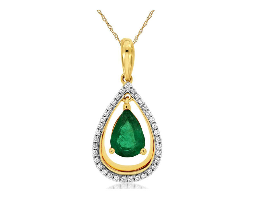 .78CT DIAMOND & AAA EMERALD 14K 2 TONE GOLD PEAR SHAPE & ROUND TEAR DROP PENDANT