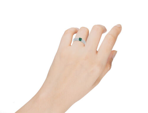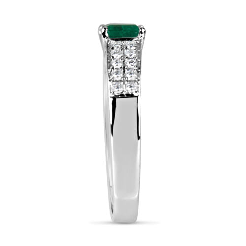 .78CT DIAMOND & AAA EMERALD 18KT WHITE GOLD SQUARE LOW SETTING ENGAGEMENT RING