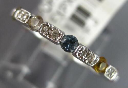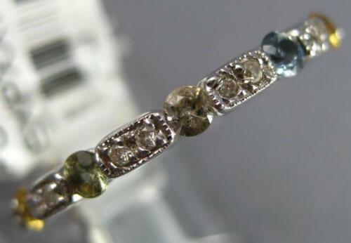 18KT WHITE GOLD WEDDING ANNIVERSARY RING. 3D ETERNITY DESIGN. ROUND DIAMONDS ARE F/G COLOR, VSSI CLARITY .11 CARATS. AAA ROUND MULTI COLOR SAPPHIRES ARE .67 CARATS. MEASURES 2.5mm WIDE. RING SIZE 6. CAN BE SIZED BY OUR MASTER JEWELER UPON REQUEST. WRITTEN APPRAISAL AVAILABLE. COMES IN A PRESENTABLE GIFT BOX.