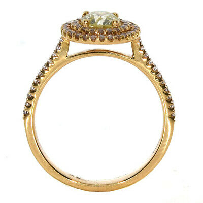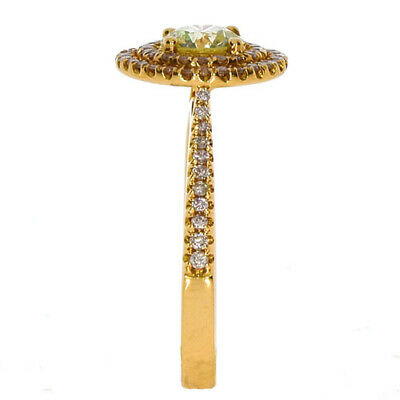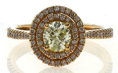 18KT YELLOW AND ROSE GOLD ENGAGEMENT RING. 3D CLASSIC DOUBLE HALO DESIGN. ROUND FANCY YELLOW DIAMOND IS .50 CARATS. PINK DIAMONDS ARE .28 CARATS. RING SIZE 7. CAN BE SIZED BY OUR MASTER JEWELER UPON REQUEST. WRITTEN APPRAISAL AVAILABLE. COMES IN A PRESENTABLE GIFT BOX.