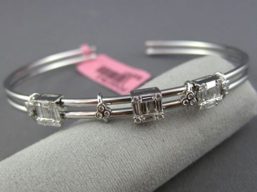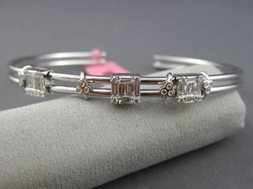 .78CT ROUND & BAGUETTE DIAMOND 18KT WHITE GOLD 3D SQUARE FLEXIBLE LOVE BANGLE