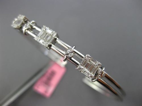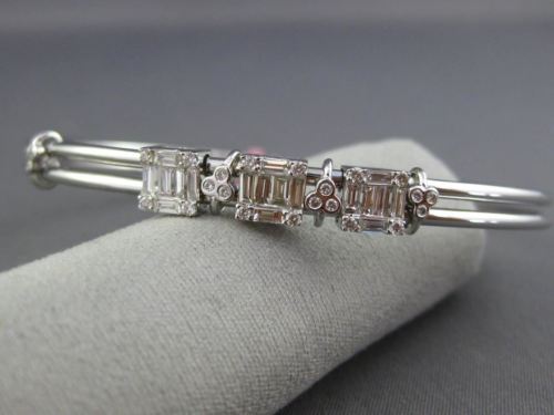 18KT WHITE GOLD LOVE BANGLE. 3D MULTI SHAPE SQUARE FLEXIBLE DESIGN. ROUND & BAGUETTE DIAMONDS ARE F/G COLOR, VSSI CLARITY .78 CARATS. MEASURES 4mm X 48mm X 63mm. FITS UP TO 6.50-7" INCH WRIST. WRITTEN APPRAISAL AVAILABLE. COMES IN A PRESENTABLE GIFT BOX.