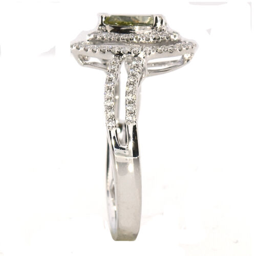 .78CT WHITE & FANCY YELLOW DIAMOND 18KT WHITE GOLD DOUBLE HALO ENGAGEMENT RING