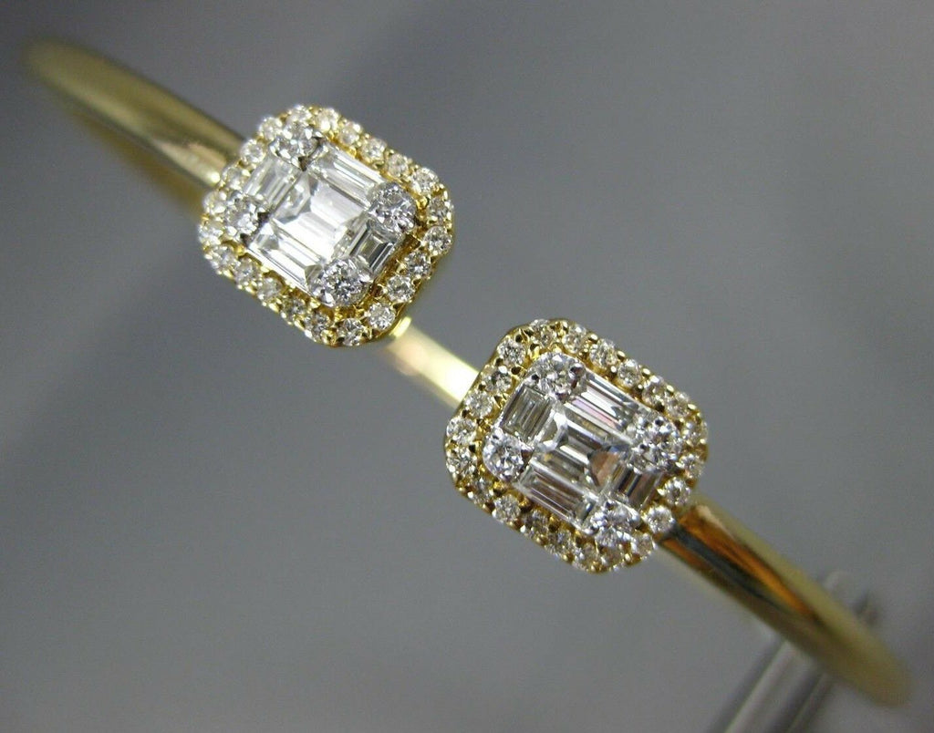 .79CT DIAMOND 18KT YELLOW GOLD ROUND & BAGUETTE CLUSTER FLEXIBLE BANGLE BRACELET