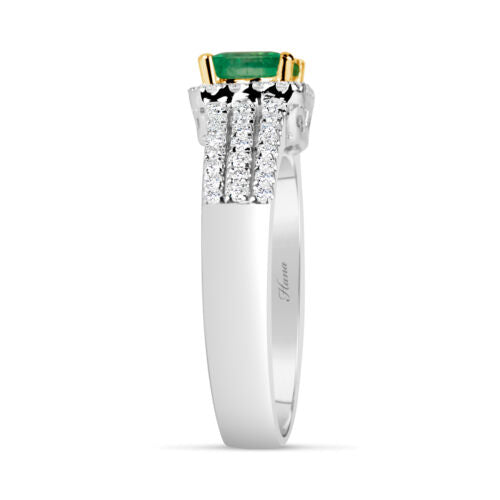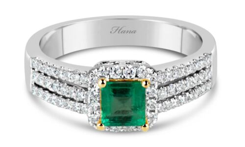 .79CT DIAMOND & AAA EMERALD 18KT 2 TONE GOLD SQUARE HALO ENGAGEMENT RING