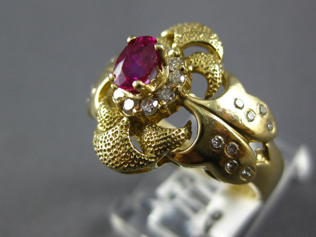 .79CT DIAMOND & AAA RUBY 14KT YELLOW GOLD OVAL & ROUND FLOWER FILIGREE FUN RING